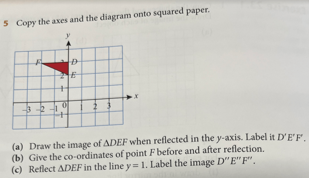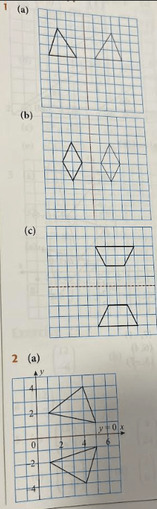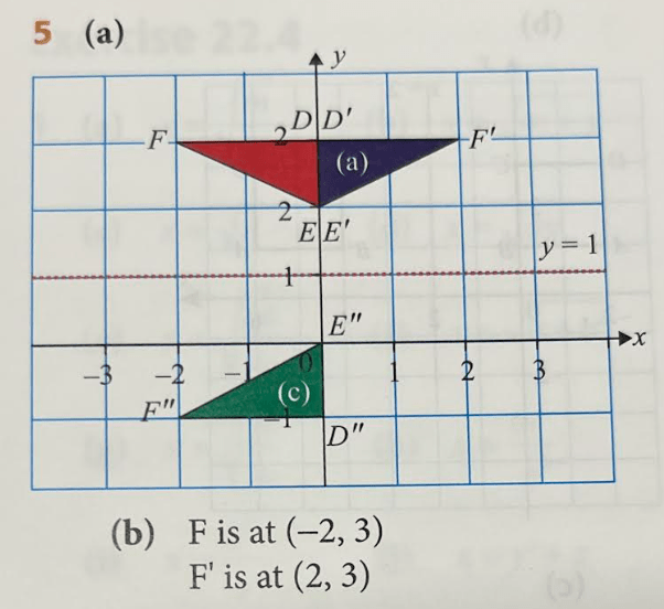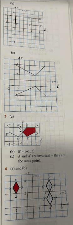 (b) Reflect shape A and shape B in the x axis. Label the images A’ and B’ respectively.