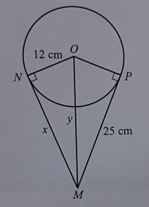 Find the lengths of x and y in this diagram correct to 2 decimal places.