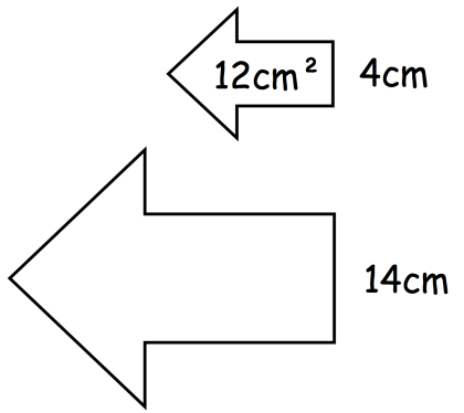 👈🏼The two arrows in the below diagram are mathematically similar. If the area of the top arrow is 12cm2, what is the area of the bottom arrow?