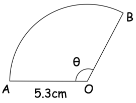 ๐๐ผThe perimeter of sector AOB is 22.81cm. Find ๐ฝ: