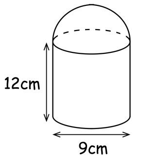 👆🏼Find the volume of the following shape, made by joining a hemisphere with a cylinder:
