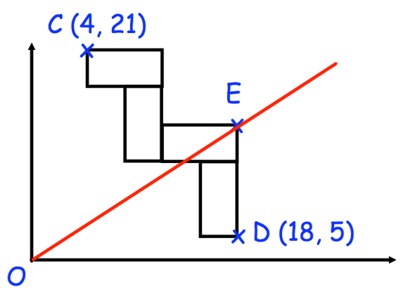 🖐🏼In the diagram below, each rectangle is identical. Find the area of one of the rectangles and find the equation of the line that passes through O and E.