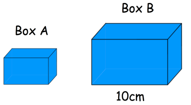 🖐🏼Box A and box B are similar containers. The ratio of the surface area of box A to the surface area of box B is 4:25. Find the length of box A: