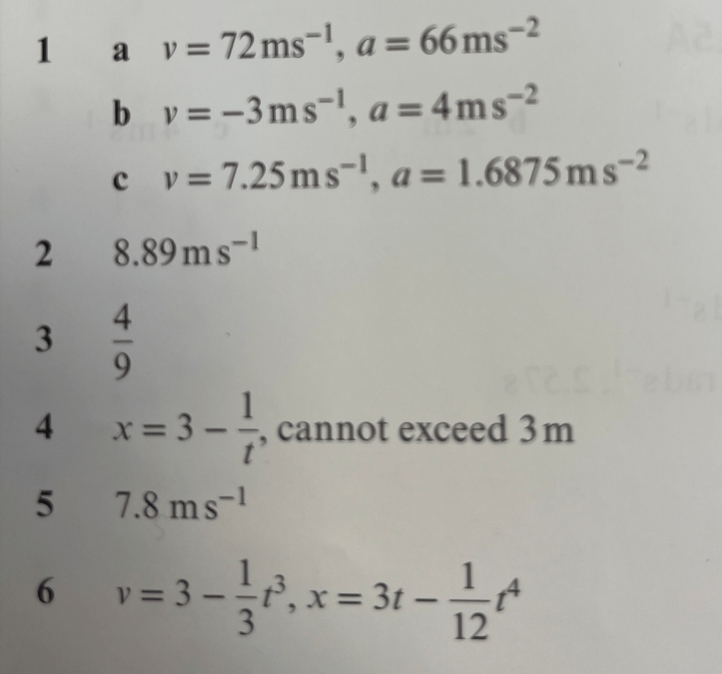 A particle is travelling along a straight line such that v = (t3 – t2 + 2)ms-1. Find: