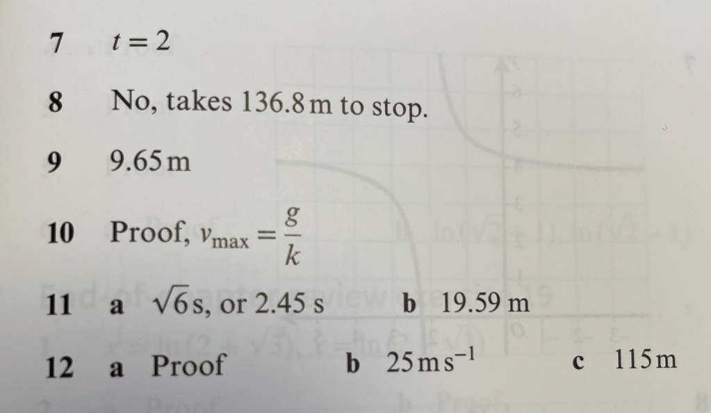 A particle is subject to forces that produce an acceleration of a = -tan(x) ms-2, where 0 ≤ x ≤ π/3. The particle travels in a straight line, and when x = 0m it passes through the point O with velocity 4ms-1.
