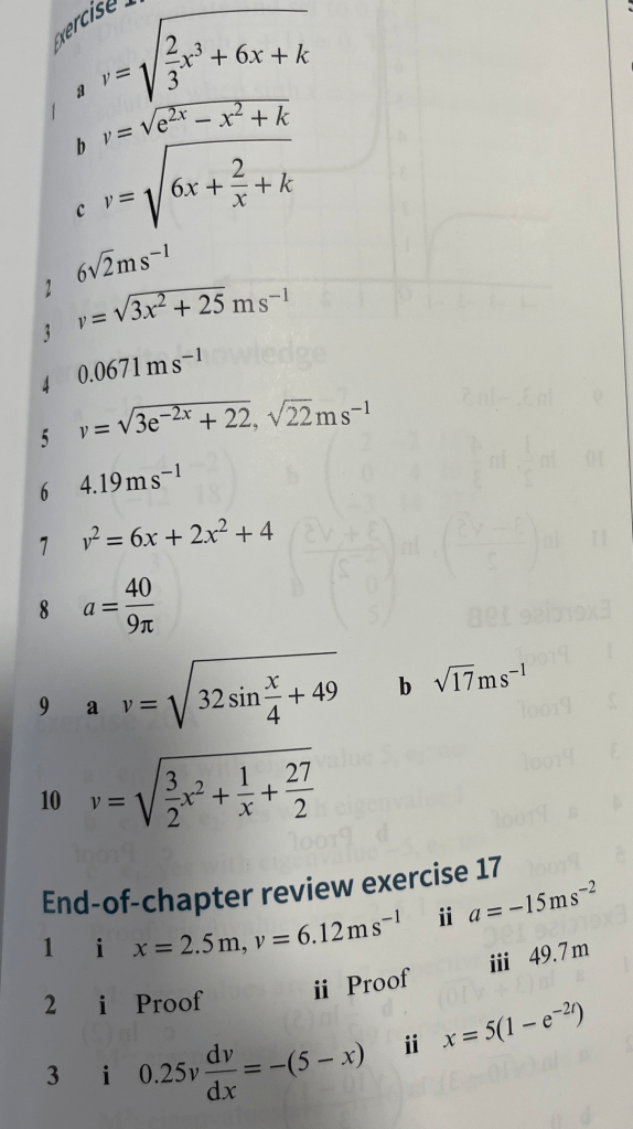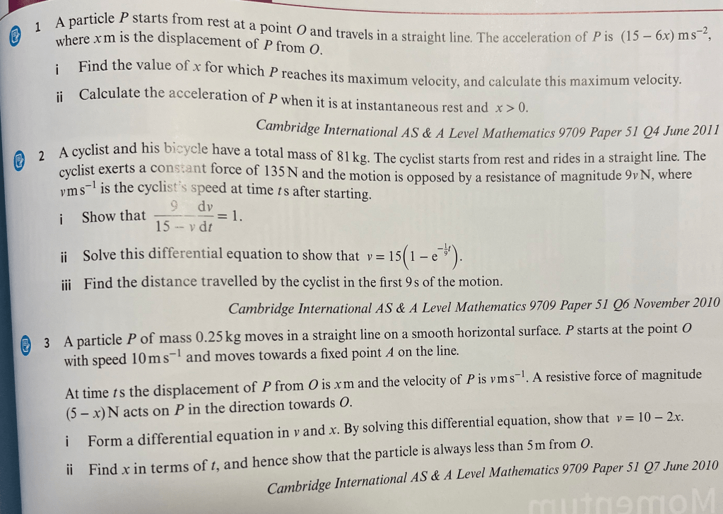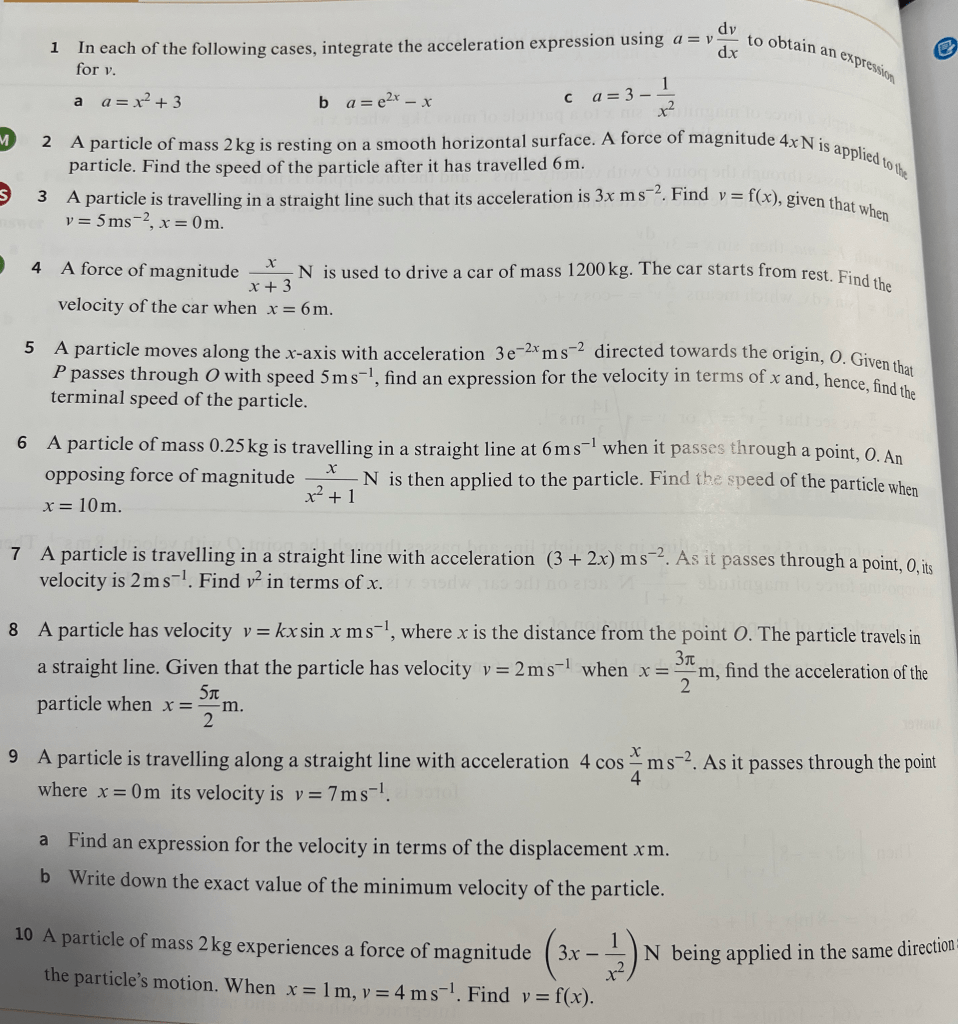 Consider a particle moving with acceleration given as where v = 2ms-1 when x = 1m. To solve it we need to set up a differential equation.