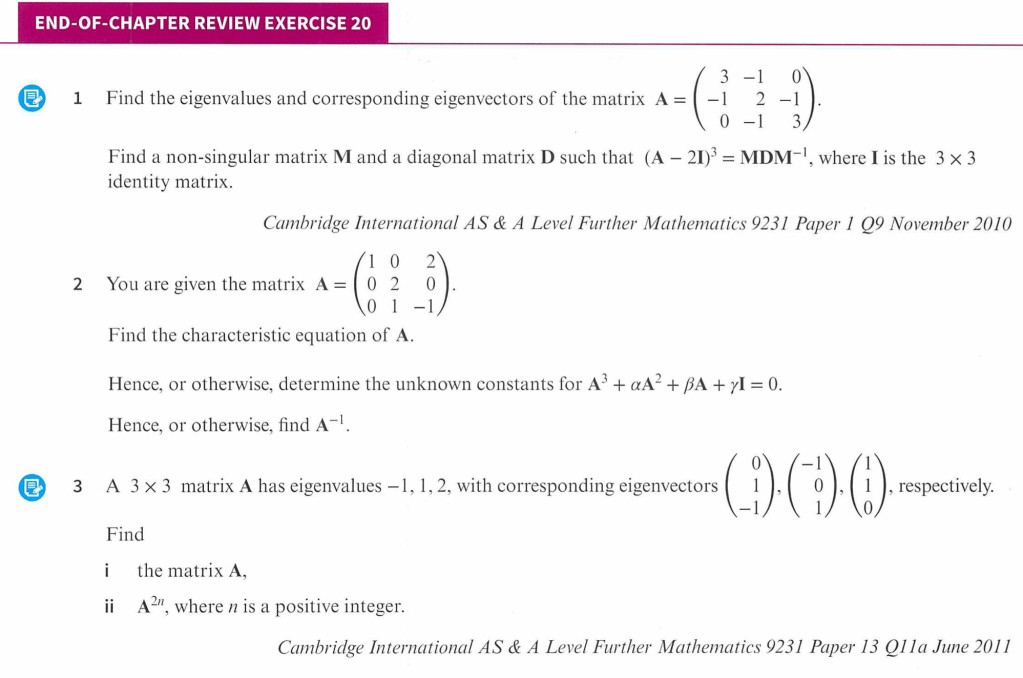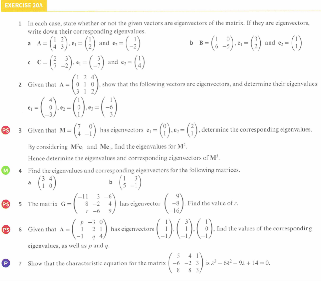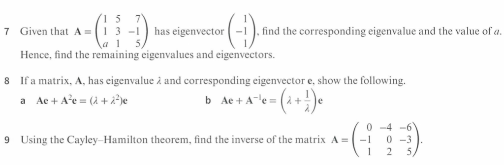 N.B. In exam questions you will also sometimes be given an eigenvector and asked to find the corresponding eigenvalue, and sometimes the converse.