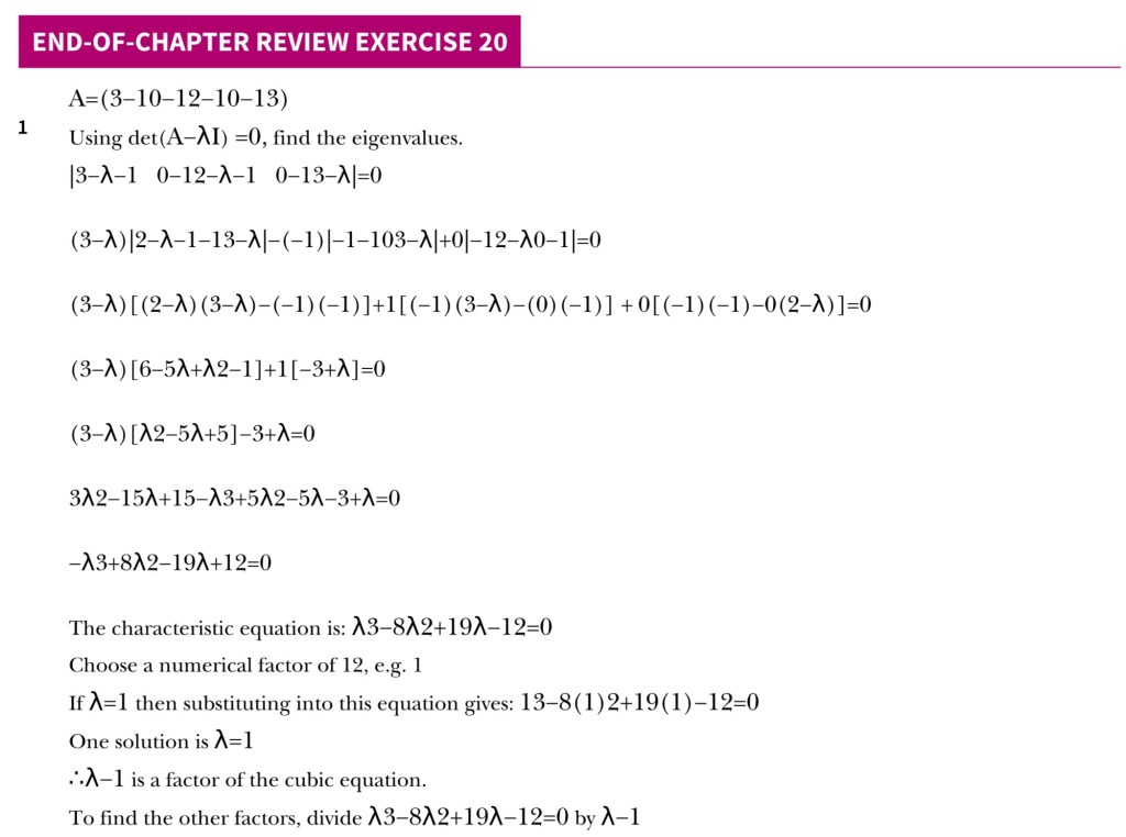 9231. FP2. Matrices 2. Exercise 20D & Miscellaneous Exercise. Worked Solutions