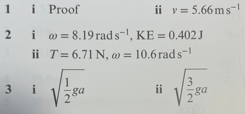 - (a) 2/3 rads-1 (b) 2m (c) 4ms-1