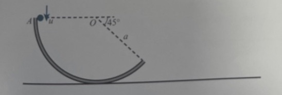 9.) A particle is held at rest on a smooth circular track which is an arc of radius a. The track is standing in a vertical plane and is fixed to a horizontal surface. The points O and A are such that OA is horizontal, as shown in the diagram below: