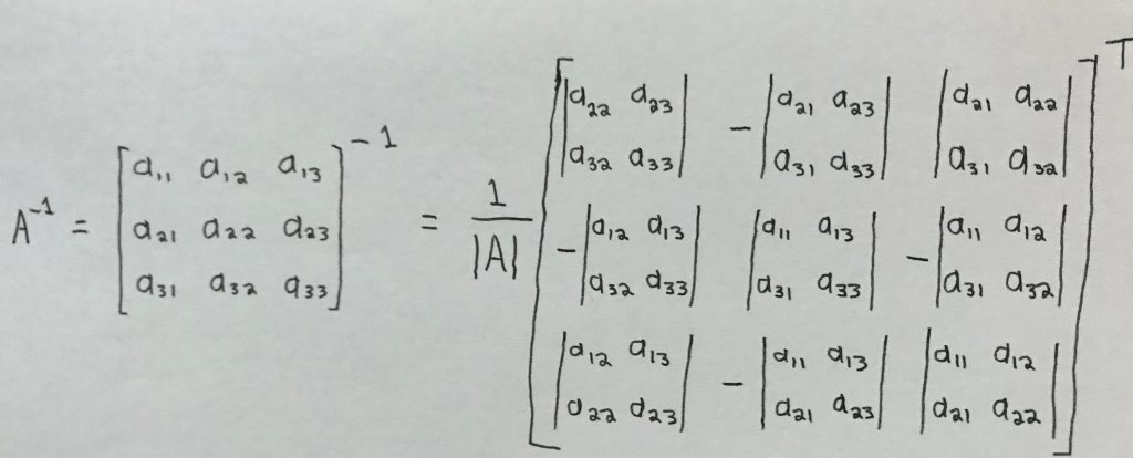 For a 3×3 matrix we can also use a slightly more complicated formula to find the inverse using cofactors. We can come back and look at this and compare it with the Gaussian method after we have learned about determinants (further down).