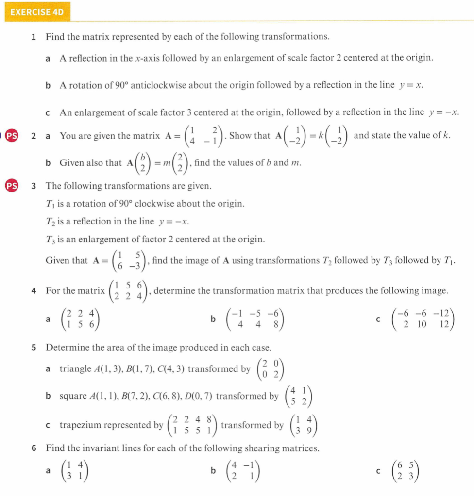 Any line unchanged by a transformation is an invariant line (N.B. points on this line may move to another point, but only within the line). For an enlargement matrix, the x-axis and y-axis are both invariant lines.