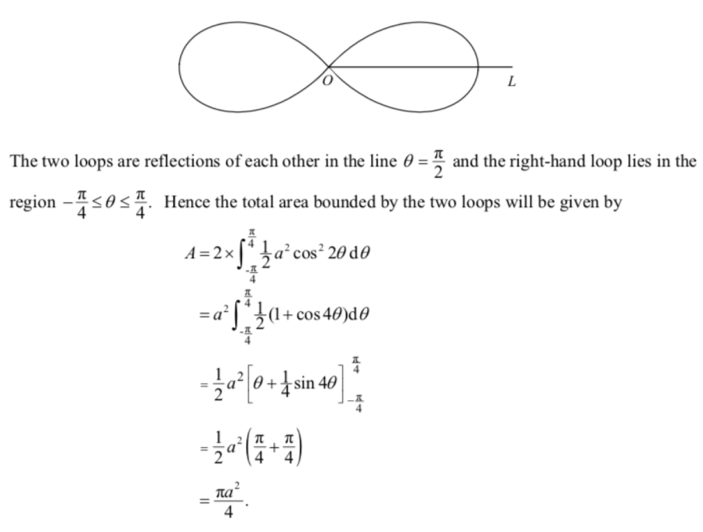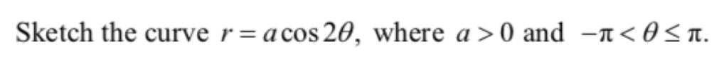 Find the total area of the two loops of the curve r = acos2π½, where a>0 and -Ο < π½ < Ο: