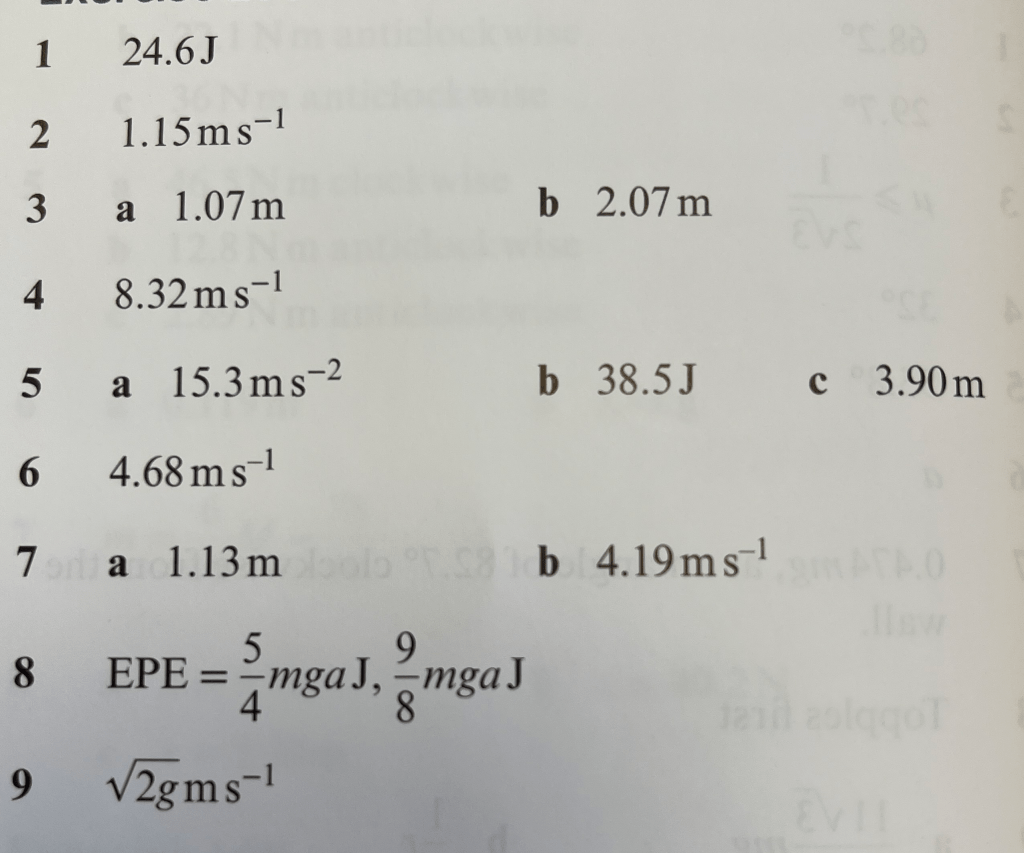 - A particle of mass 5kg is attached to one end of a light elastic string of natural length 0.8m. The other end of the string is attached to a fixed ceiling and the particle is allowed to rest, hanging in equilibrium. If the string is stretched by an additional 80%, determine the modulus of elasticity. Hence find the elastic potential energy stored in the string.