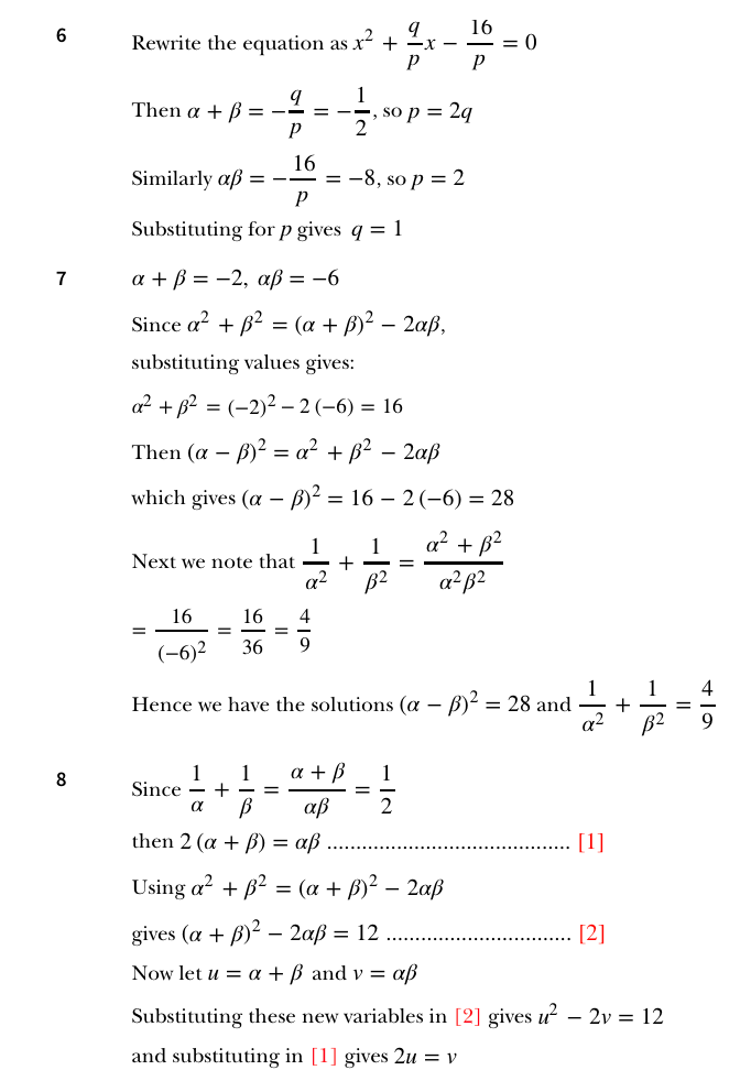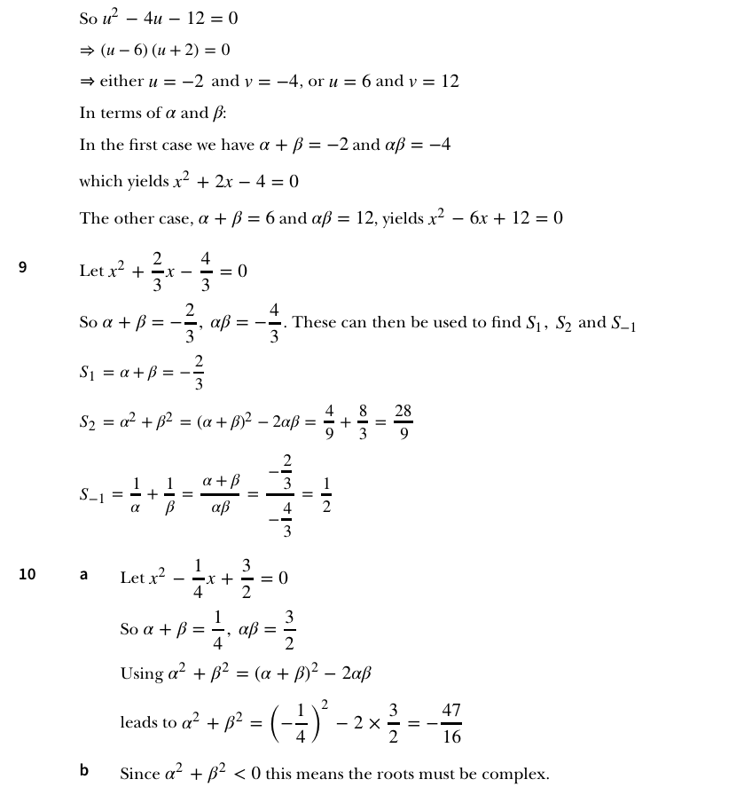 9231. Pure 1. Roots of Polynomials. Exercise 1