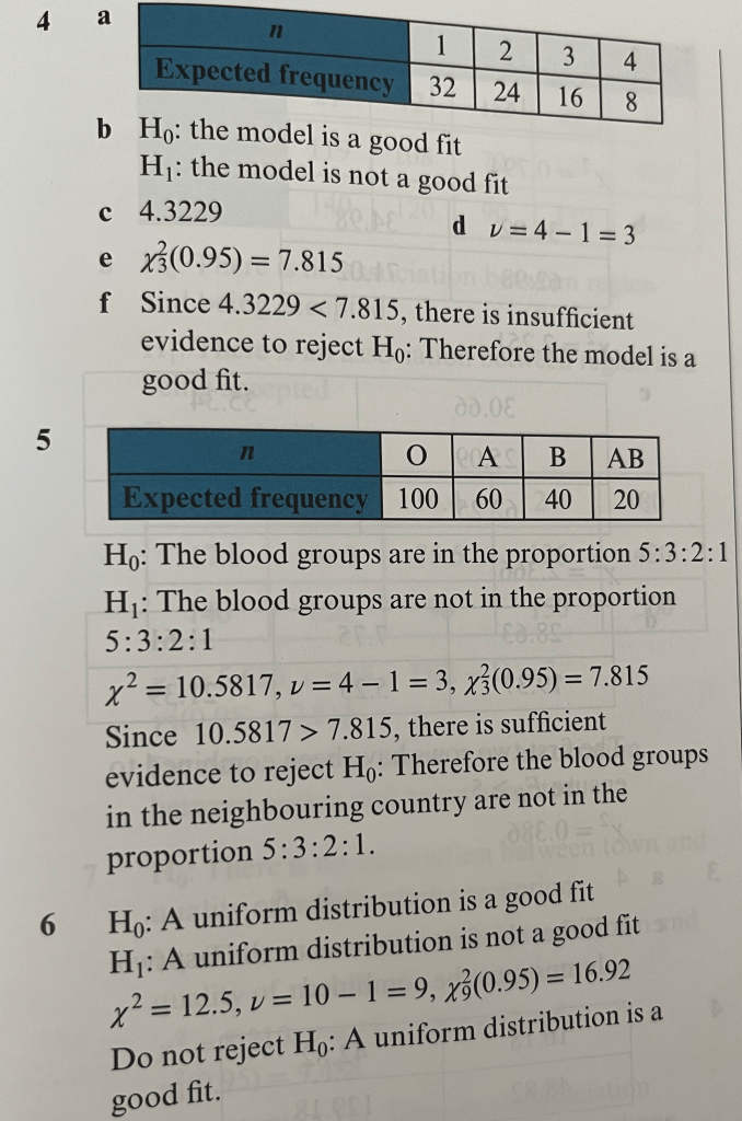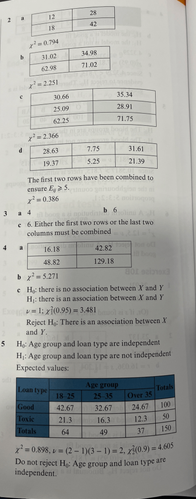 Answers to End of “Chi-Squared” Chapter Mixed Exercise