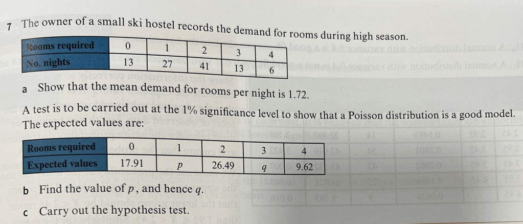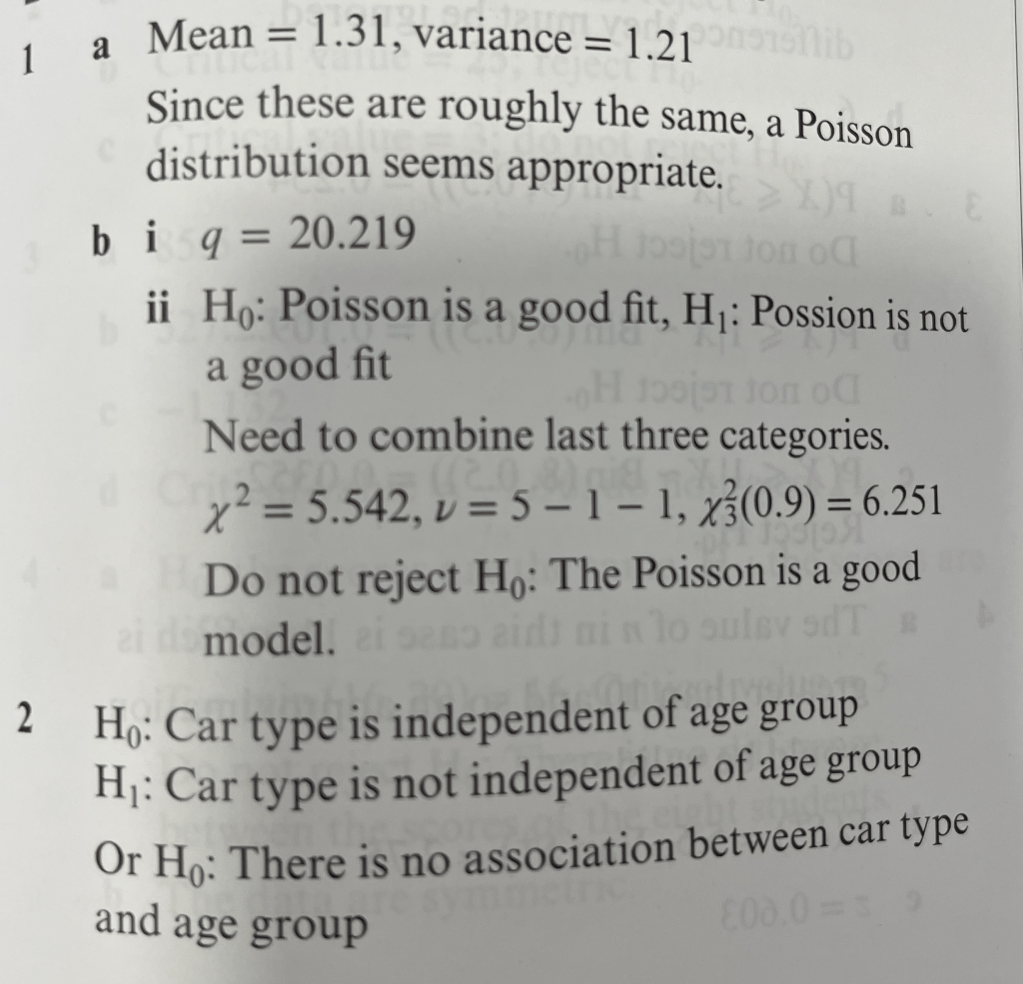 Similarly with the Poisson distribution (a distribution introduced in S2 which is the probability of a given number of events occurring in a fixed interval of time or space if these events occur with a known constant mean rate) we can try to find whether a dataset fits the Poisson distribution with or without the given rate. The parameter here is π΄ which can be estimated with .