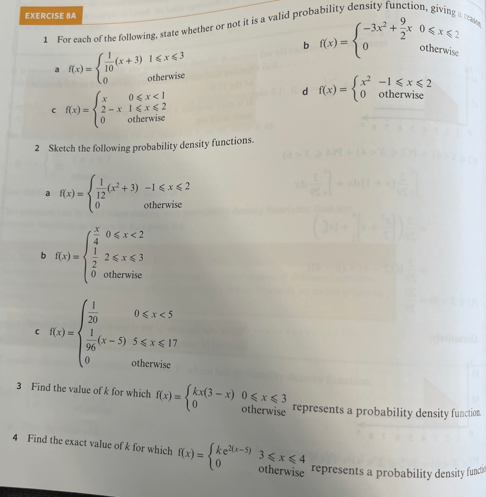 Find the value of k for which f(x) = kx2 could represent a probability density function over the interval 1 ≤ x ≤ 3.