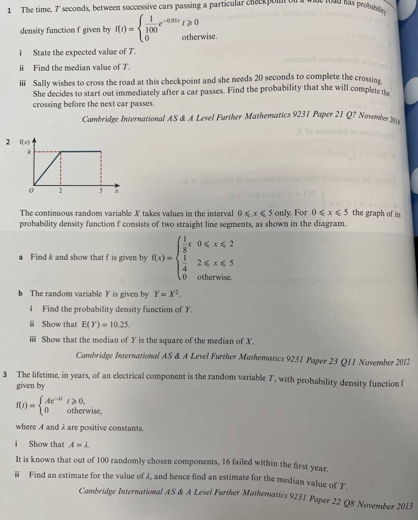 End of Chapter ‘Continuous Random Variables’ Exercise