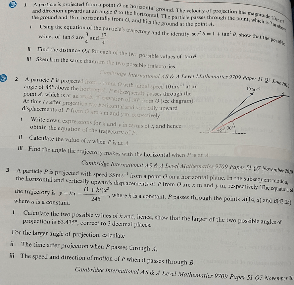 At time t seconds, a particle P is projected with speed at an angle