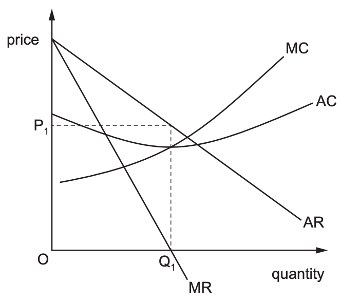 1. The diagram shows the cost and revenue curves of a monopolist: