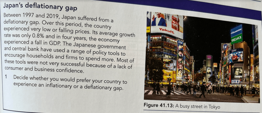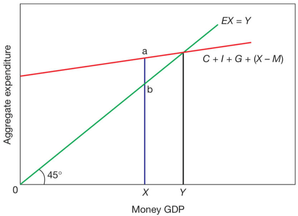 Below we see an economy in equilibrium with a GDP of Y above the level of output X that could be achieved with resources fully employed. Here ab represents the inflationary gap: