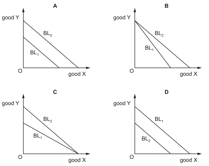 1. The diagrams show changes in a consumer’s budget line (BL) for two goods.