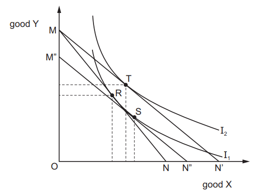 2. A consumer demands two goods, X and Y. The consumer’s initial equilibrium is at R and final