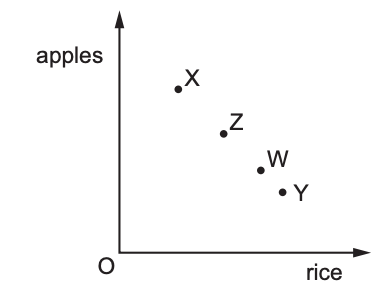 5. The diagram shows various combinations of apples and rice which are potentially available to a