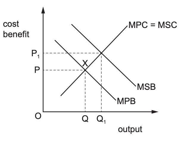 2. The diagram shows the private and social marginal costs and benefits curves for the antibiotics market. The market equilibrium is at point X.
