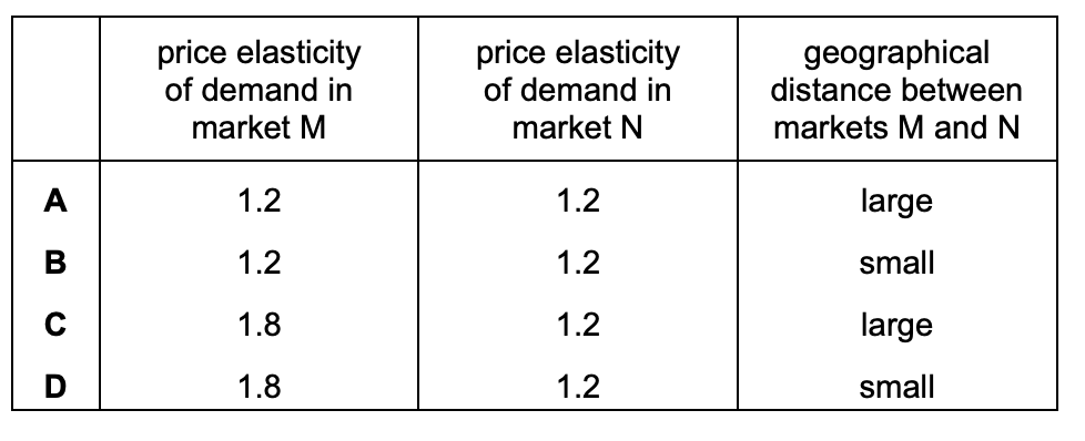 Under which conditions will a policy of price discrimination between the two markets be most