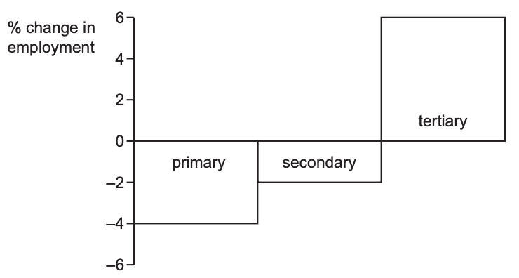 4. The chart shows changes in employment by sector for a country between 2010 and 2016.