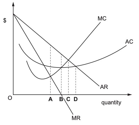 5. The diagram shows the costs and revenue for a firm in imperfect competition.