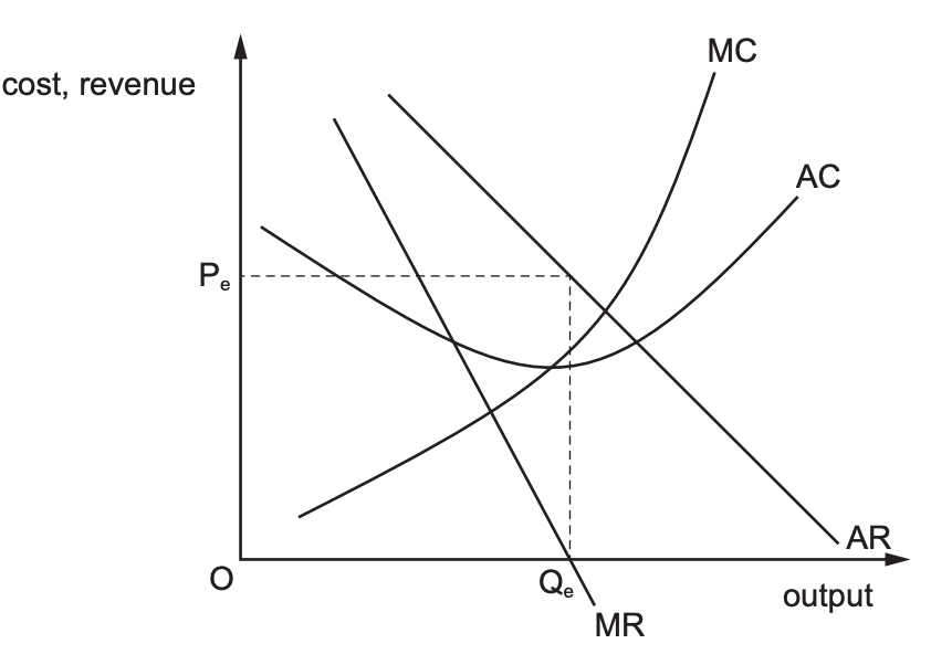 8. The diagram shows the costs and revenues of a firm that is producing output Qe with a price Pe.