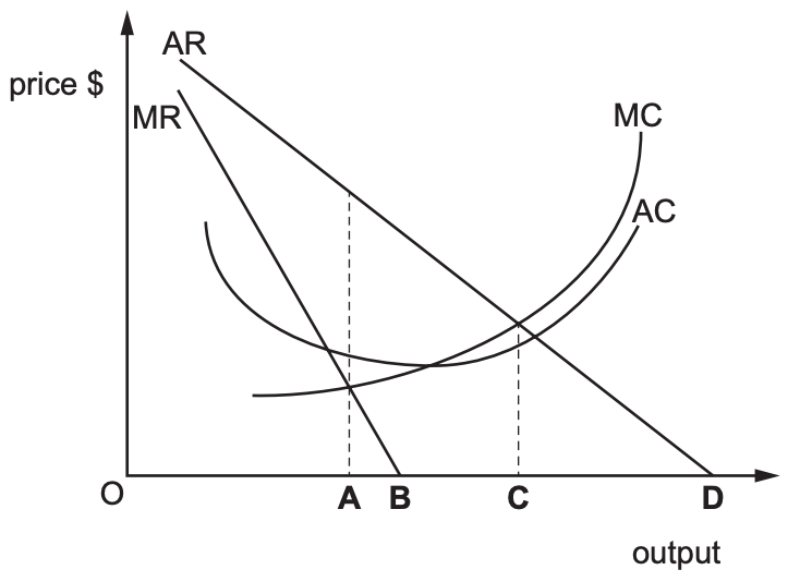 4. The diagram shows a decrease in demand for the product of a profit maximising monopolist.