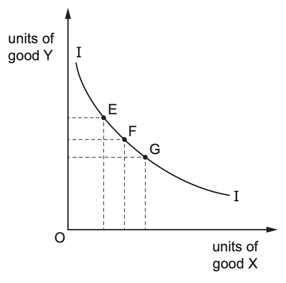 The diagram shows a consumer’s indifference curve for good X and good Y.