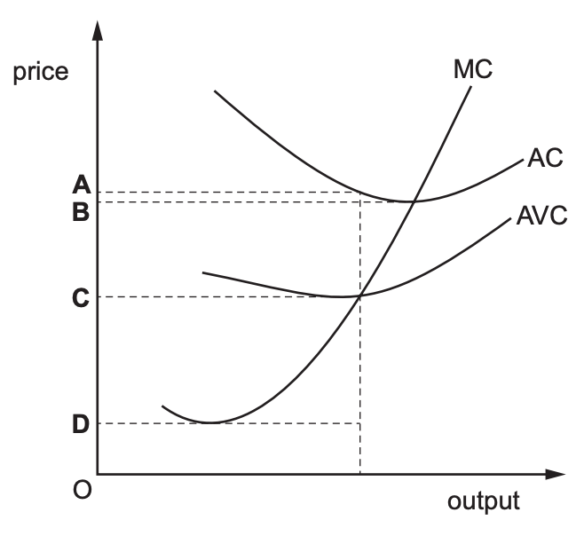 2. The diagram shows the cost curves of a firm operating in a perfectly competitive market.