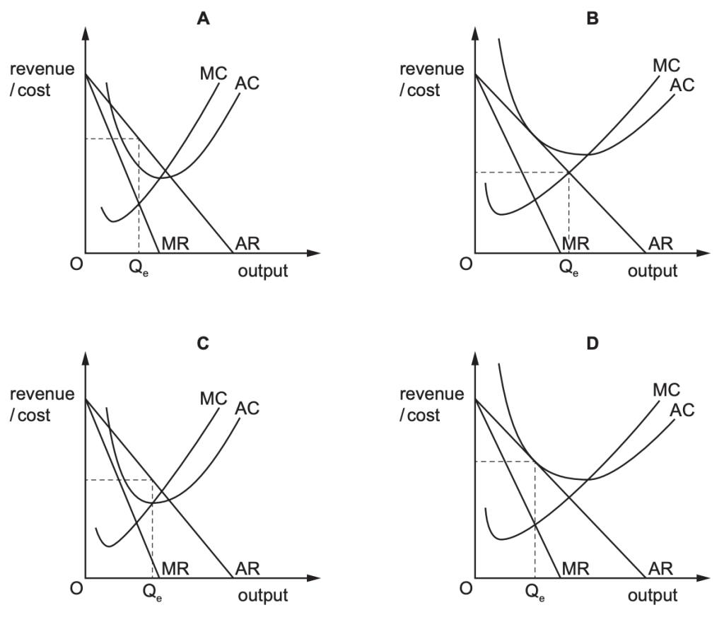5. Which diagram shows a monopolistically competitive firm in long-run equilibrium?