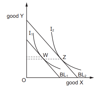 When the consumer’s budget line shifts from BL1 to BL2, consumption changes from point W to point Z.
