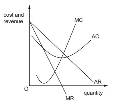 4. The diagram shows the marginal cost (MC), average cost (AC), marginal revenue (MR) and average revenue (AR) curves of a profit-maximising, monopolistically competitive firm.