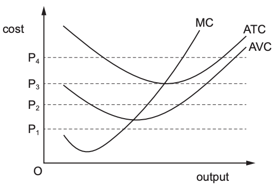 2. The diagram shows the marginal cost (MC), average variable cost (AVC) and average total cost