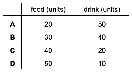 1. Selina has an income of $100 and buys food and drink. The price of a unit of food is $2 while the