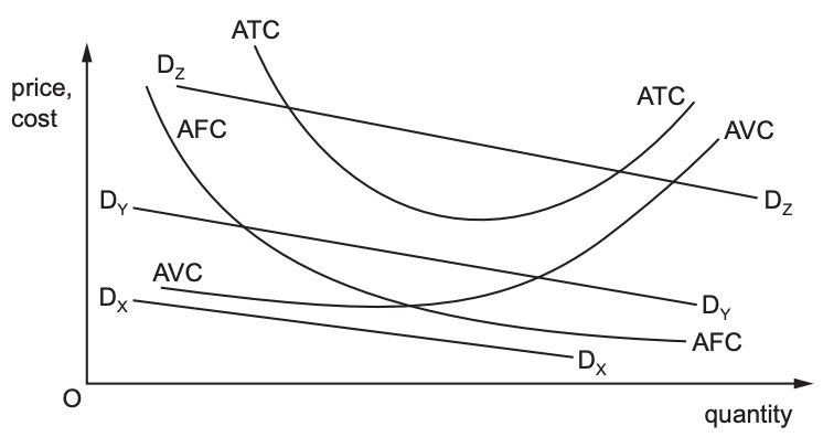 cost (ATC) curves faced by three firms X, Y and Z. DX, DY and DZ are the three respective