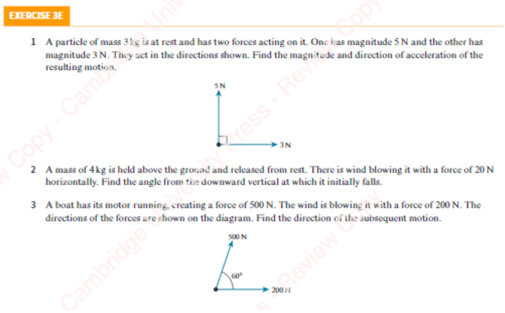 - A cyclist starts from rest and moves along a straight, horizontal track. The forward driving force is a constant 72N and the resistances to forward motion are a constant 20N. The combined mass of the bicycle and the cyclist is 80kg