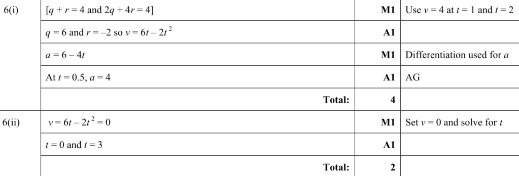 (8.) (i) TA = 2.5 + 0.25a, TB = 7.5 – 0.75a (iii) 1.2ms-1; (iv) 6ms-2.