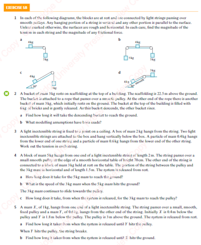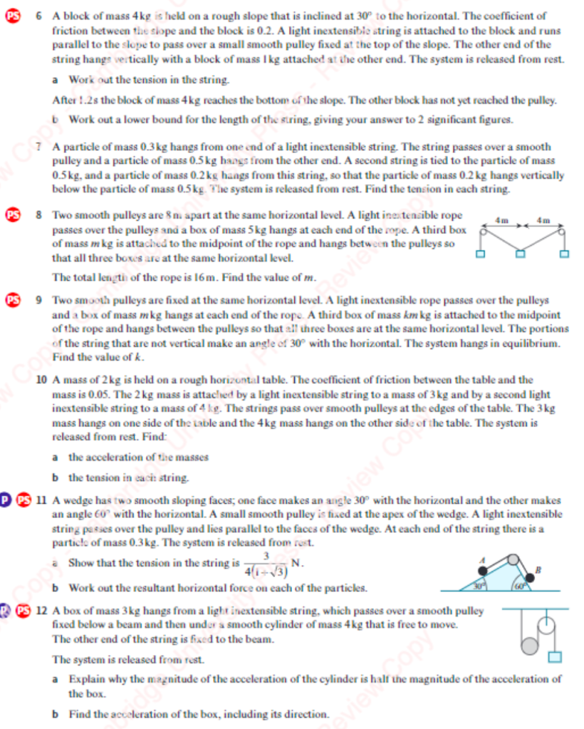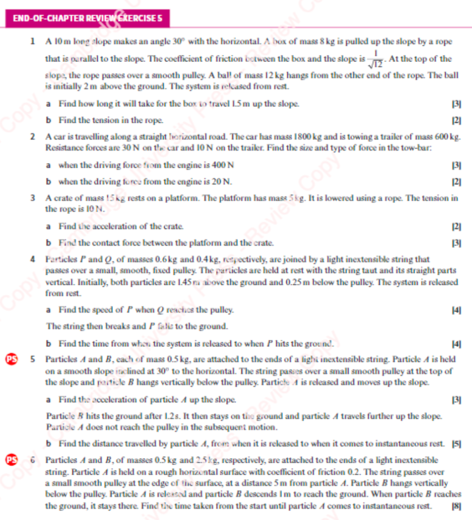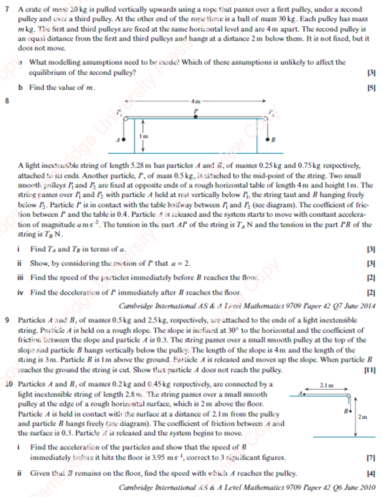 - Particles P and Q, of masses 2m and 3m, are attached to the ends of a light inextensible string. The string passes over a small smooth fixed pulley and the masses hang with the string taut. The system is released from rest: