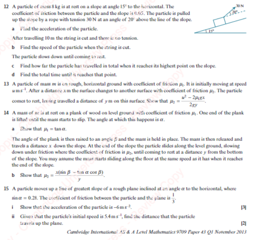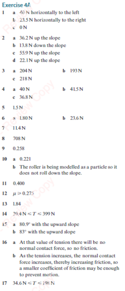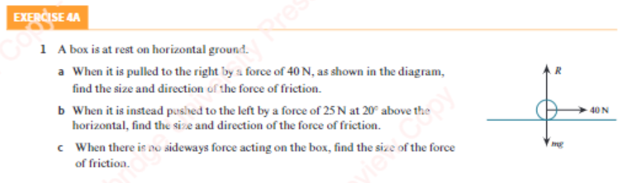 Exercise (skip questions 3 and 4 which are about total contact force. Total contact force is the resultant of the friction and the reaction force, which we haven’t talked about (and won’t;))