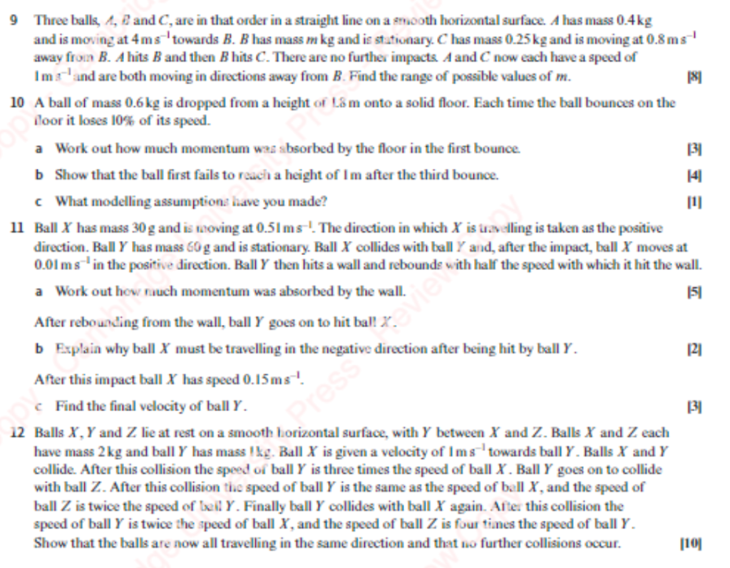 - A ball of mass 200g moving at 4ms-1 makes a direct collision with a larger ball of mass 500g moving at 1ms-1. On impact the balls coalesce.