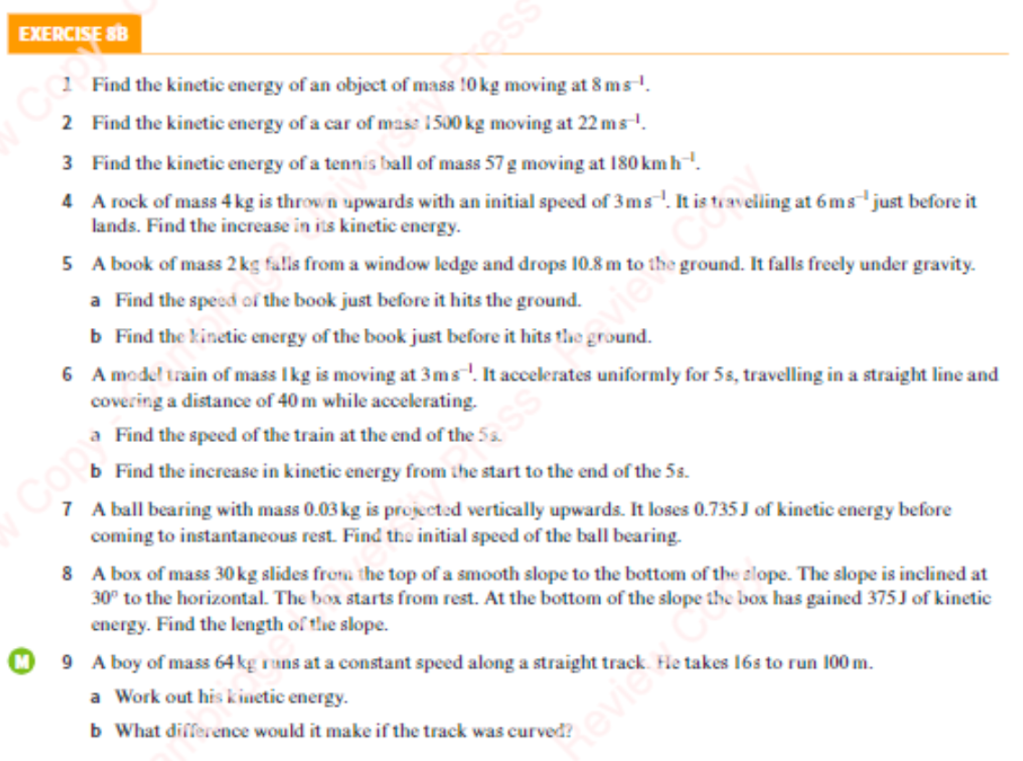 - Find the kinetic energy of a body of mass 3kg moving at 5ms-1.