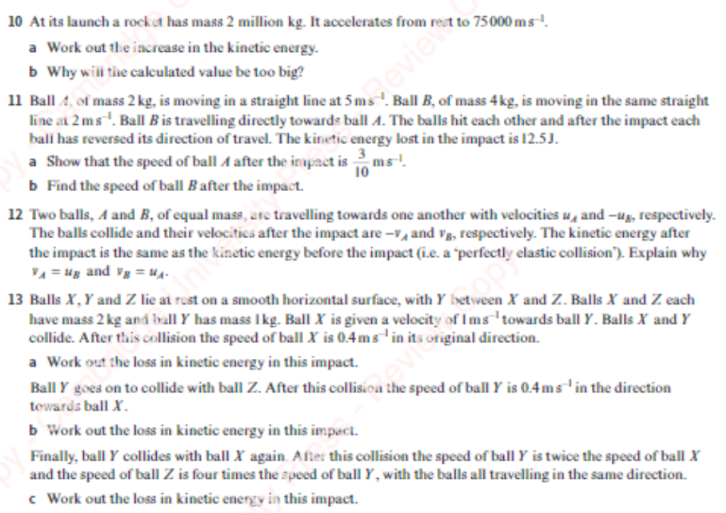 - A ball of mass 50g hits the ground with speed 10ms-1 and rebounds with speed 6ms-1. Find the loss in kinetic energy that occurs in the bounce.